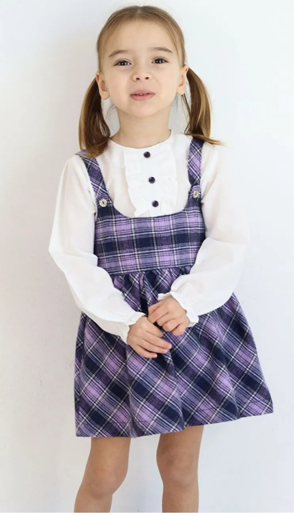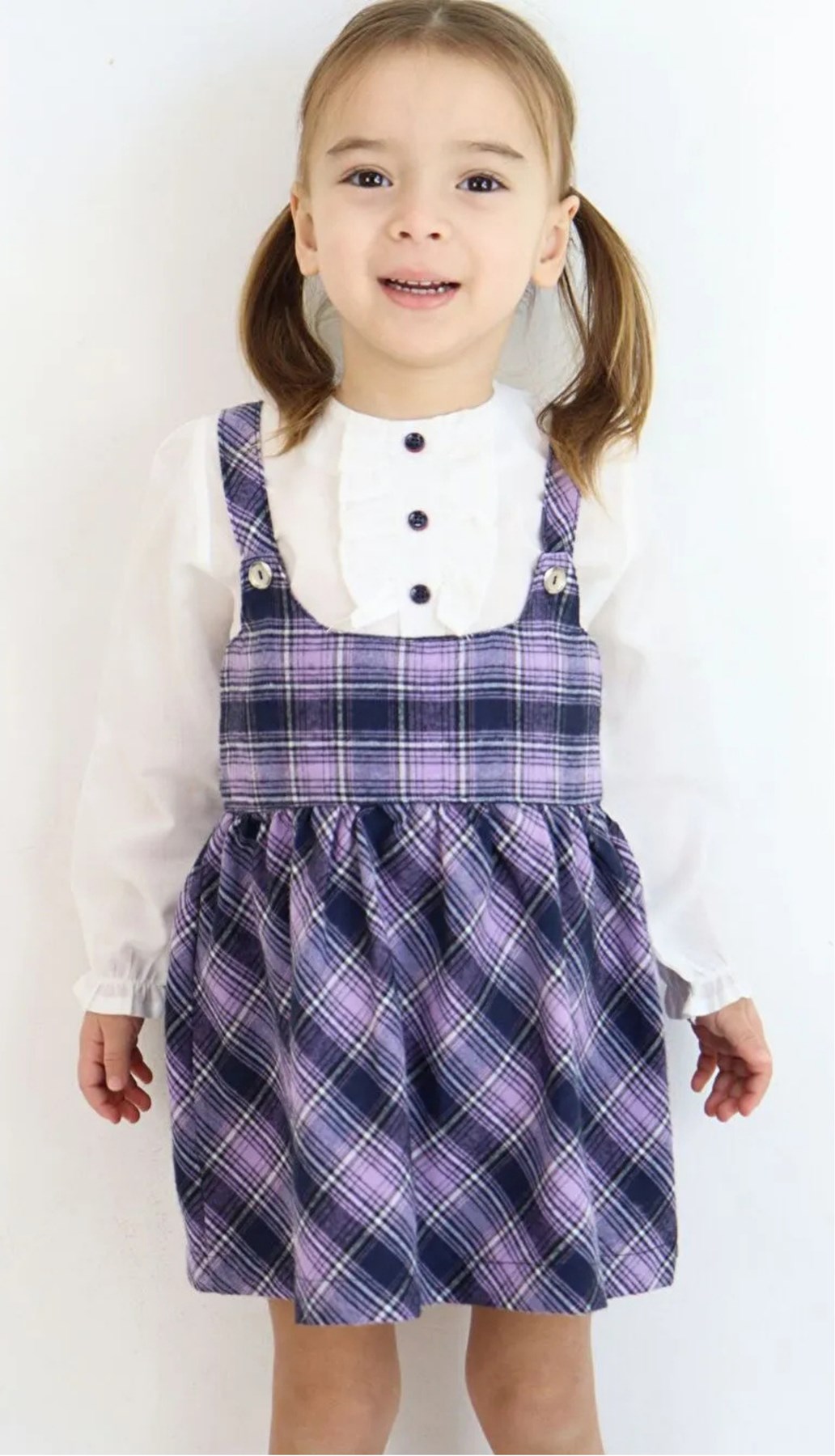 Lunarose Lila Bisiklet Yaka Uzun Kollu Gömlek Ve Askılı Kız Bebek Elbise 1,5-2Yaş