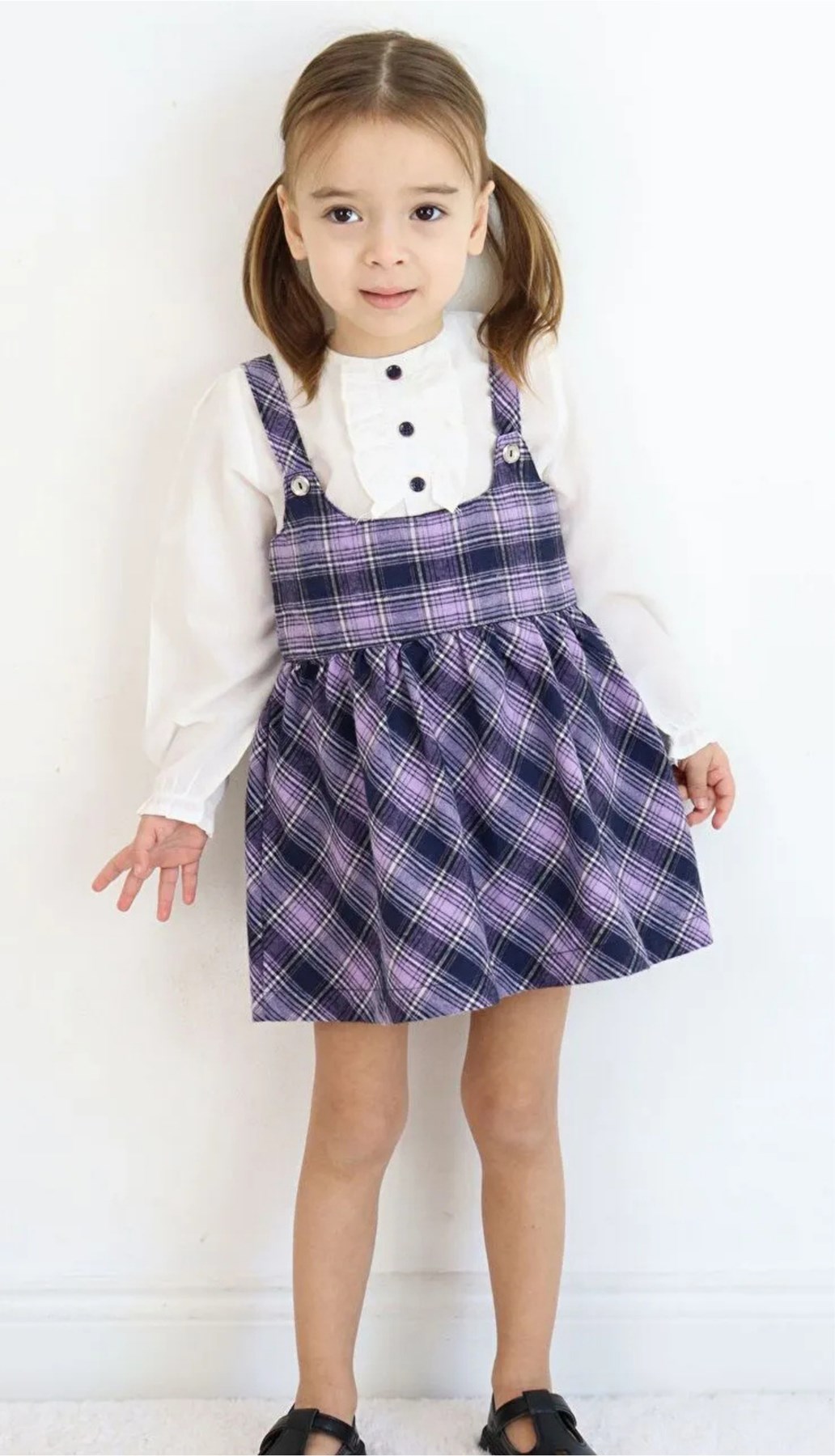 Lunarose Lila Bisiklet Yaka Uzun Kollu Gömlek Ve Askılı Kız Bebek Elbise 1,5-2Yaş