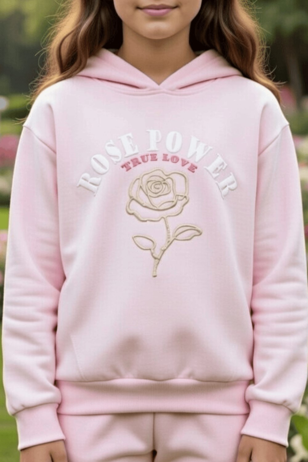Kız Çocuk pembe Kapüşonlu Sweatshirt – Rose Power Baskılı
