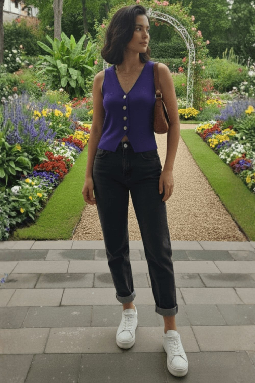 Gardırobunuzun en joker parçası olmaya aday bu mor triko yelek, zarif detaylarıyla stilinizi bir üst seviyeye taşıyor. Hem jean pantolonlarla günlük kombinlerde hem de şık eteklerle özel davetlerde rahatlıkla kullanılabilir.